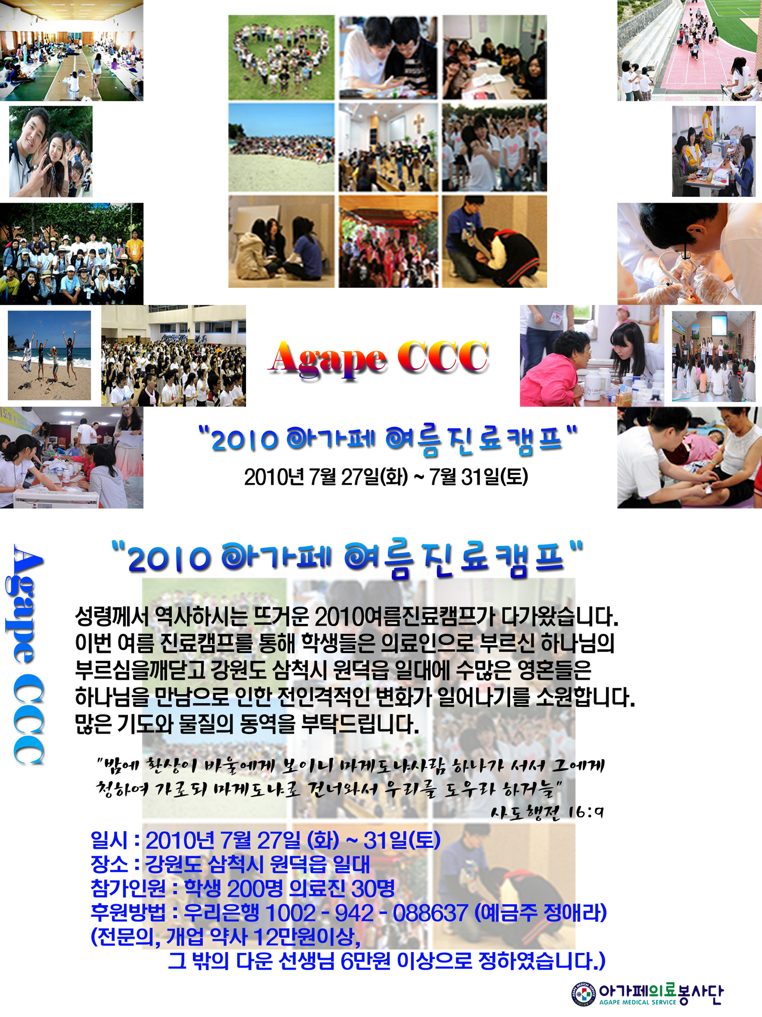 2010 아가페 여름진료 캠프 후원 안내^^ > 아가페 뉴스