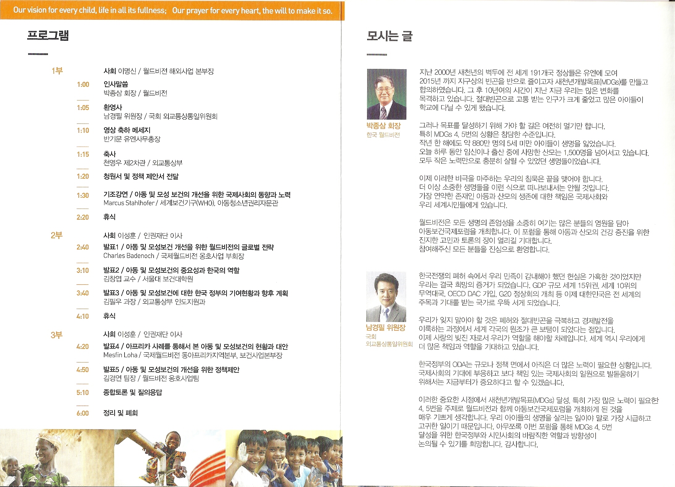 주최 : 국회 외교통상통일위원회 남경필 위원장싱, 월드비전