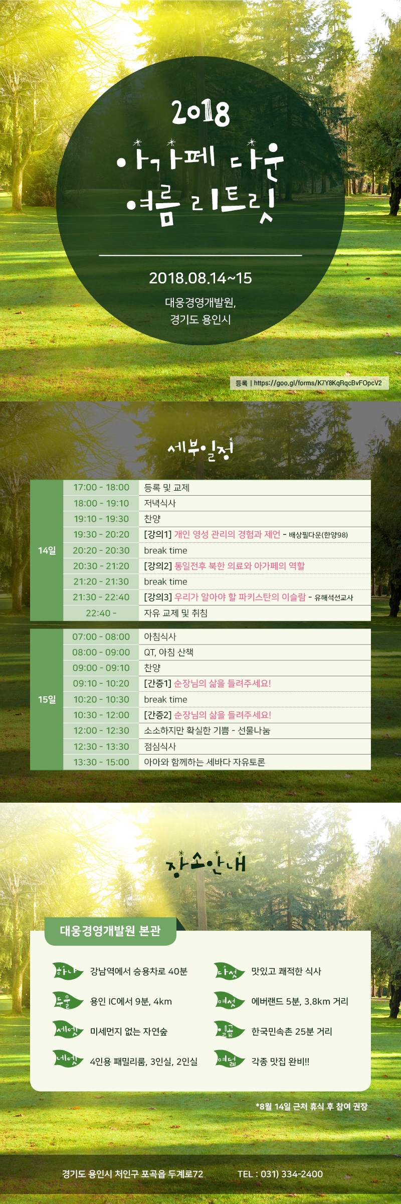 2018년 여름, 잠시 우리의 숨을 돌아보고 진정한 숨과 쉼을 누리며 하반기를 준비하는 아가페 다운 리트릿에 여러분을 초대합니다