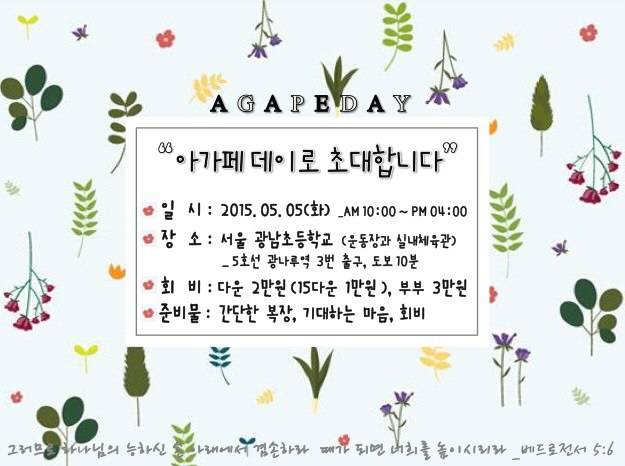 [아가페 데이]2015년 아가페데이 안내 > 아가페 뉴스