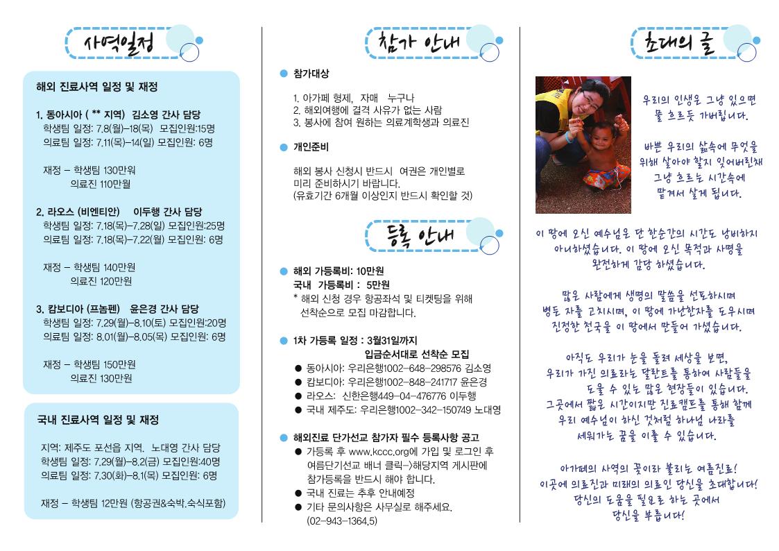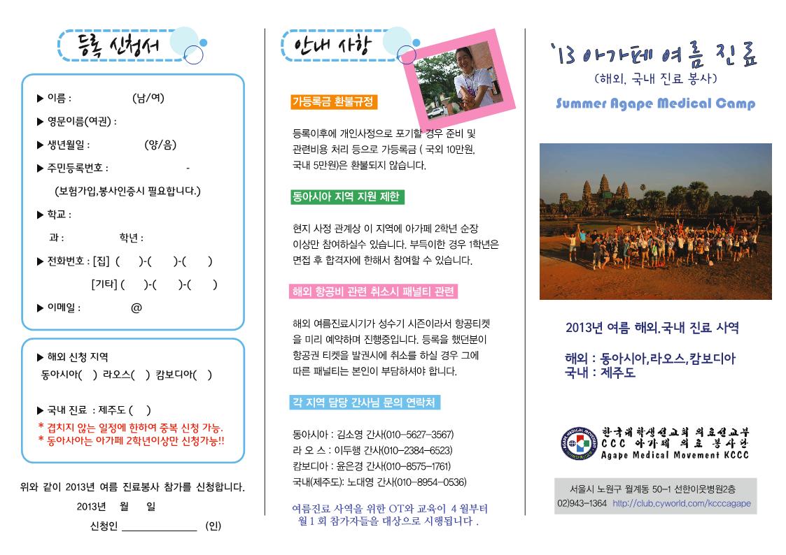 여름진료 신청서가 나왔습니다. > 아가페 뉴스