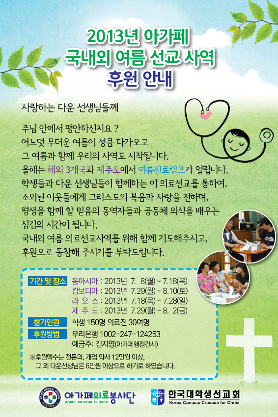 국내외 여름 단기선교 후원안내. > 아가페 뉴스
