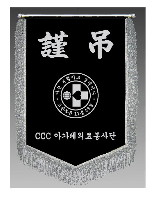 아가페 사무실로 연락을 주시면 아가페의료봉사단 근조기를 보내드리겠습니다.