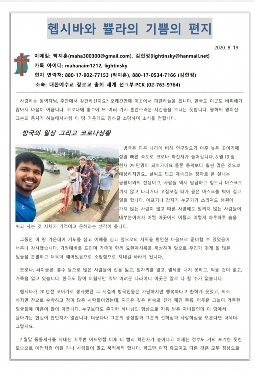 20' 아가페 여름사역- 선교사님들의 인사와 근황을 전합니다