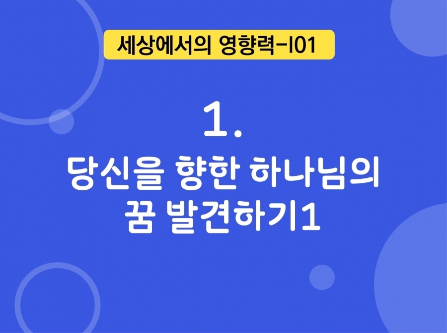 I1 - 당신을 향한 하나님의 꿈 발견하기1 > I(세상에서의 영향력)