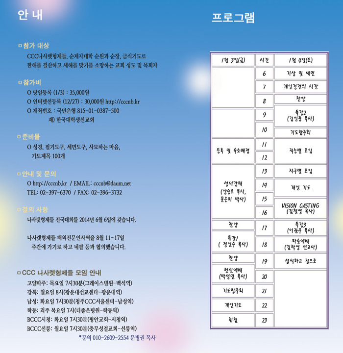 2014 나사렛형제들 신년금식수련회 (소개의글 및 구체적 일정)