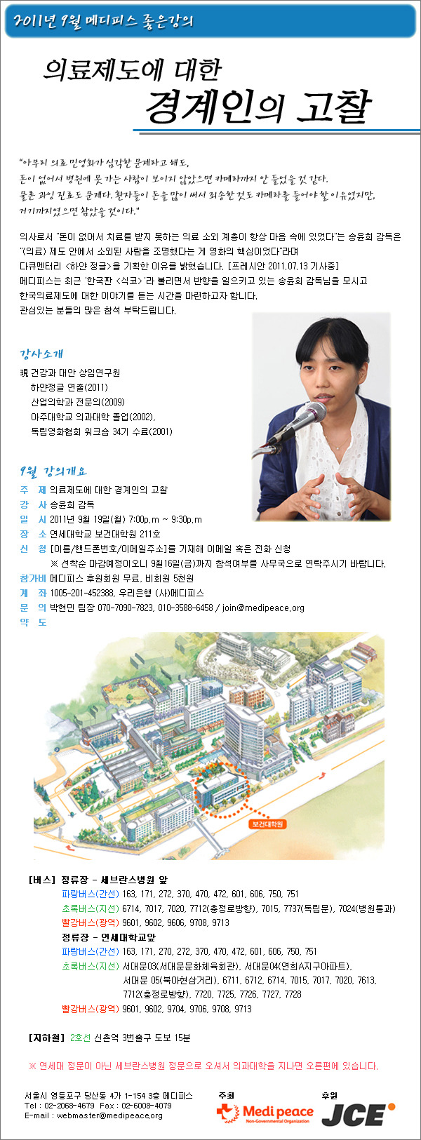 [메디피스 9월 좋은강의] 의료제도에 대한 경계인의 고찰("하얀정글" 송윤희 감독)