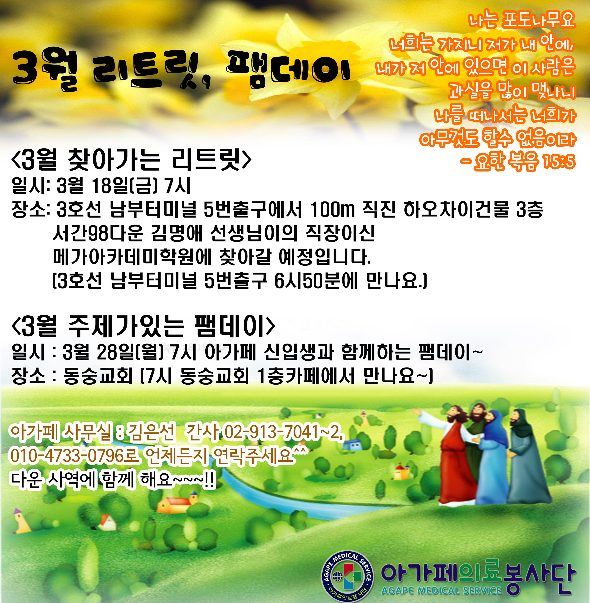 3월 리트릿, 팸데이 공지^^ > 아가페 나눔터2020