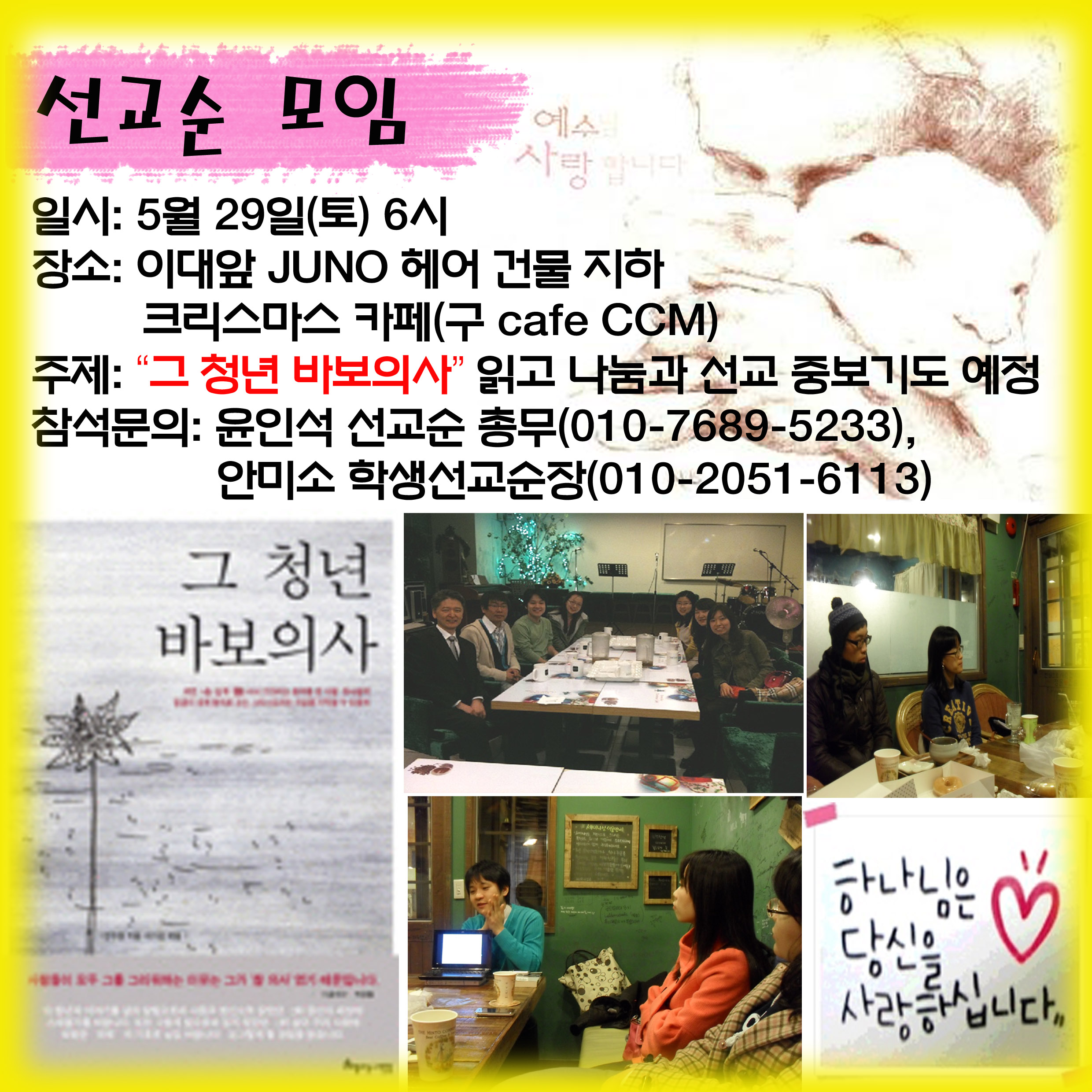 5월 29일(토) 선교순 모임 광고^^ > 아가페 나눔터2020