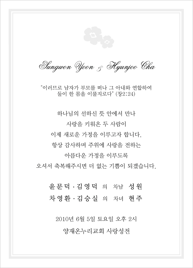 소개를 해주셨고, 그 자매와 1년 교제 후 결혼합니다. ^^