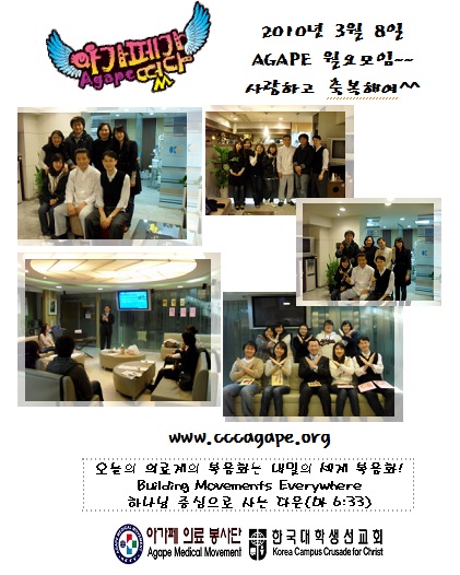 7. 3월부터 아가페 사무실에 새 식구가 오셨어요. 다운담당으로 오신 김은선 간사님(성남지구 나사렛) 반갑습니다. 앞으로 반갑게 인사해 주세요^^