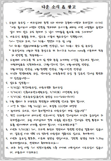 - 3/27(토) 선교순모임(윤인석 순장님 010-7689-5233)