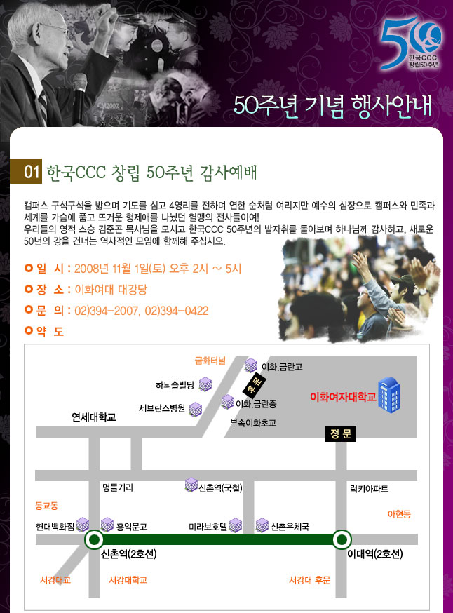 11월 1일 CCC 50주년 감사예배가 있습니다. > 아가페 나눔터2020