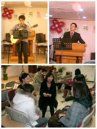 팸데이에 참석한 08다운들을 위해 축복의 중보기도를 나누고 다운사역을 소개하였습니다. 지난주 월요모임때 먼저 다운이 된 우리들이 08다운들을 축복하는 메세지를 촬영하여 보여주었고 07년도 사역소개를 영상으로 보았습니다. 역시 Agape Medical Movement 라는 이름처럼 작지만 움직이는 아가페의 사역을 통해 08년도에도 역사하실 하나님이 더욱 기대하게 됩니다!!