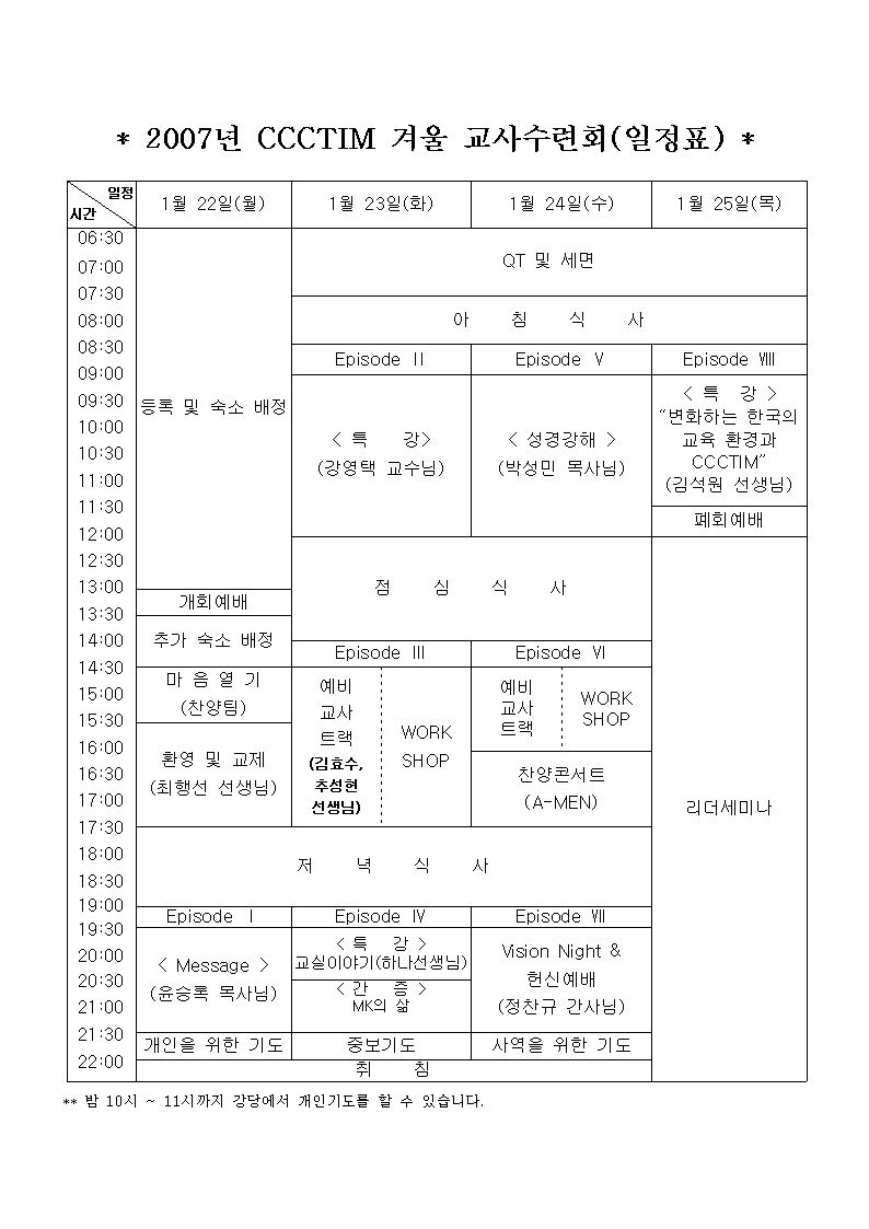 < 2007 CCCTIM 겨울교사수련회 안내 >