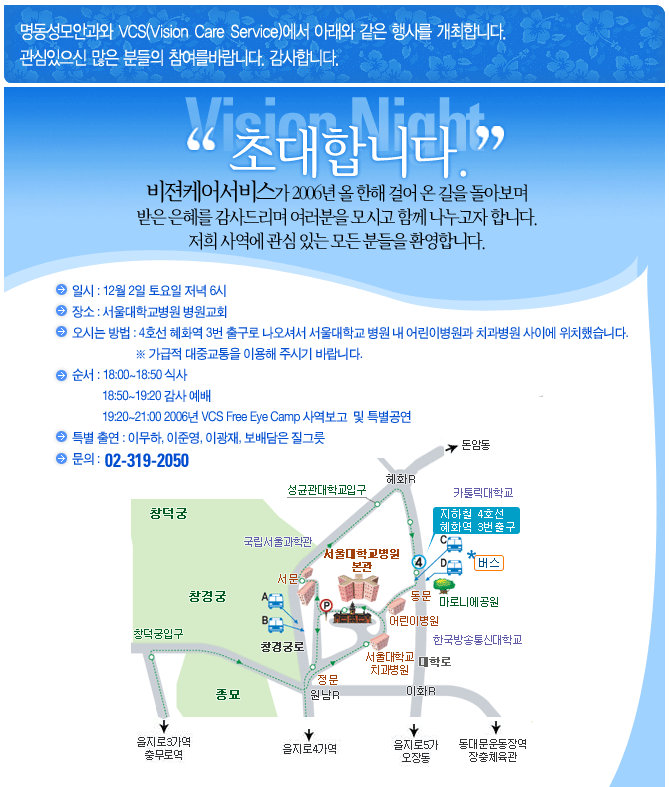 12월 2일 저녁 6시 서울대학병원내의 대학교회입니다.