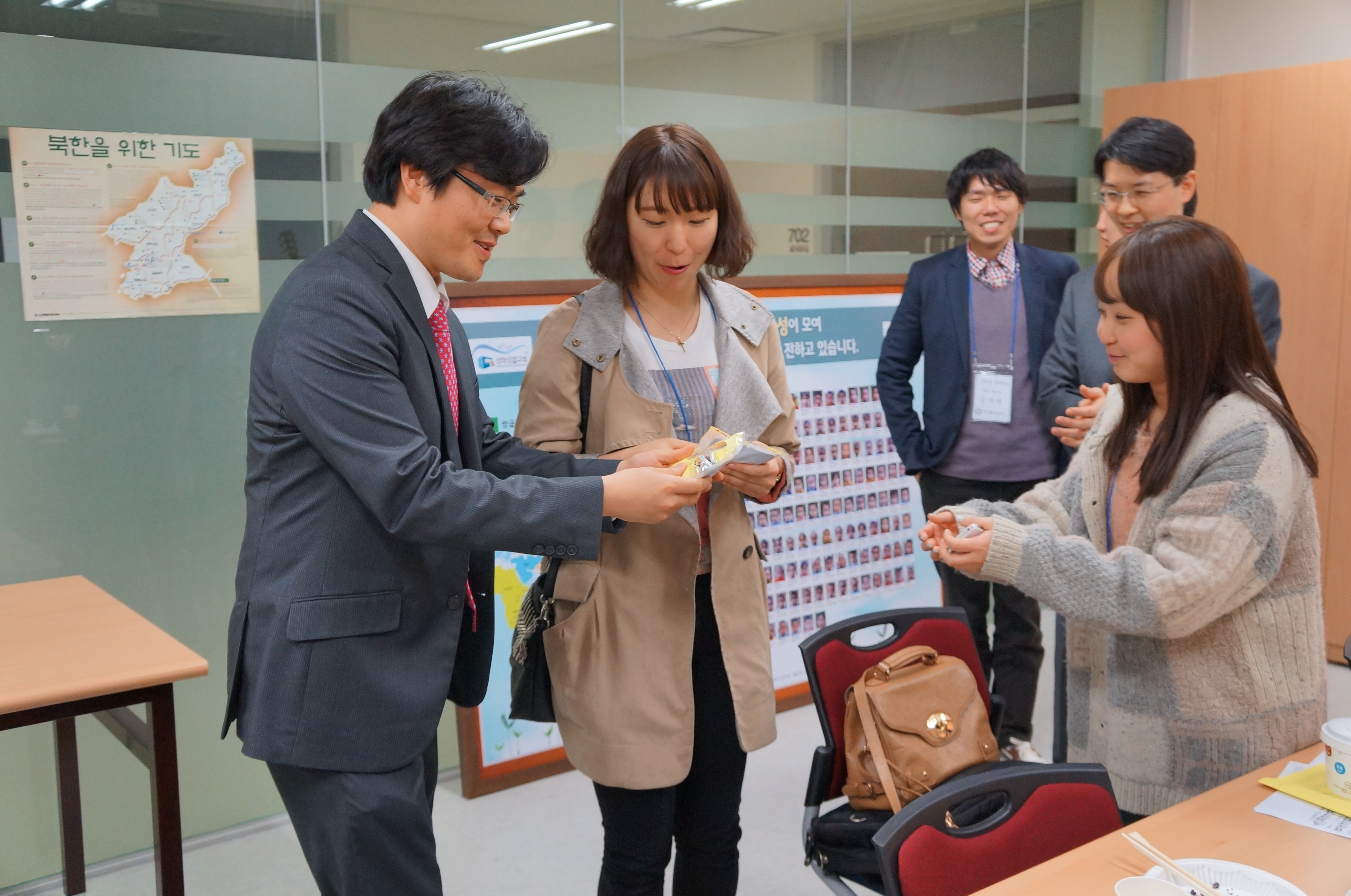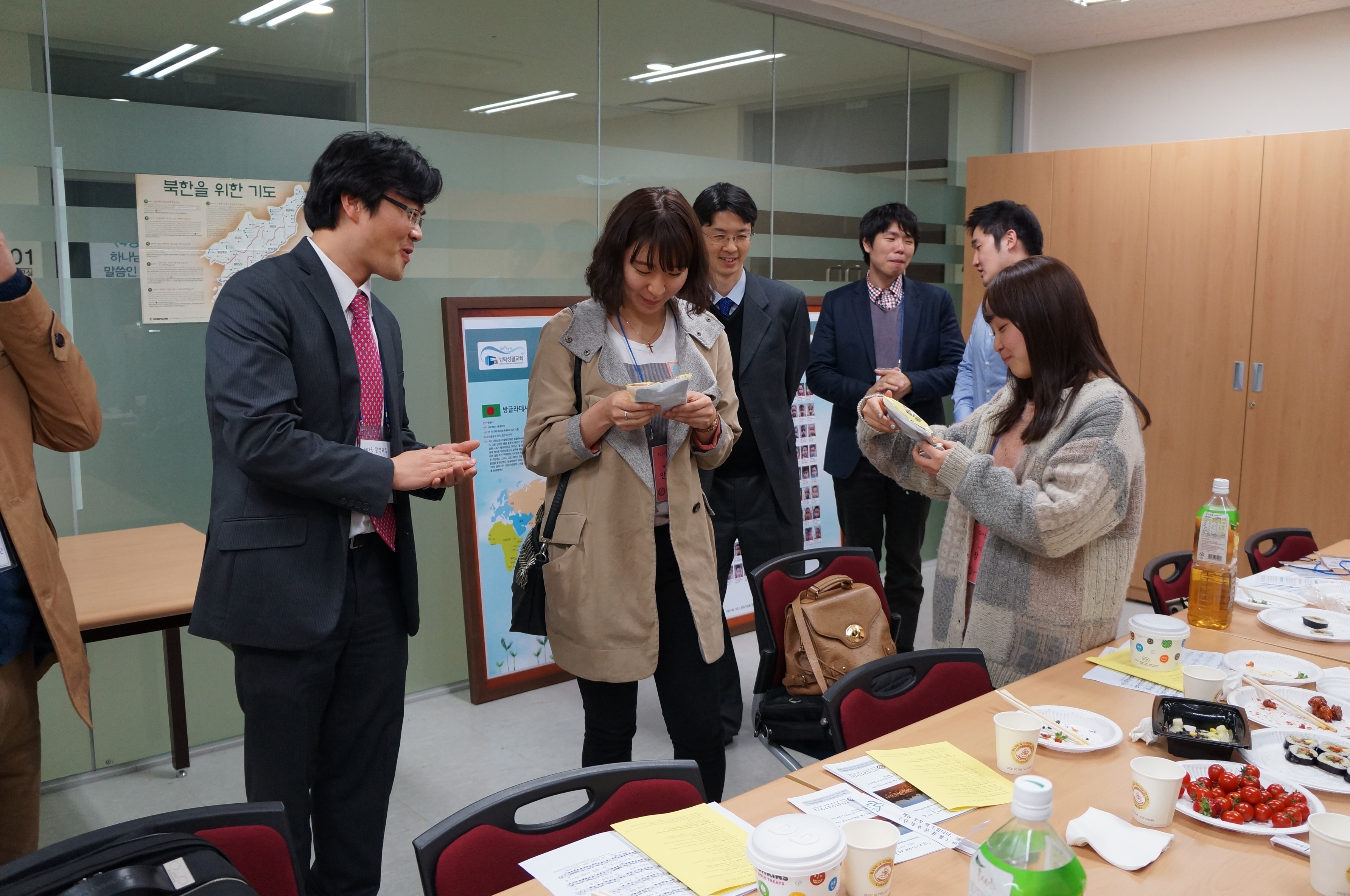 사진은 13다운을 축복하며 선물증정의 모습입니다.