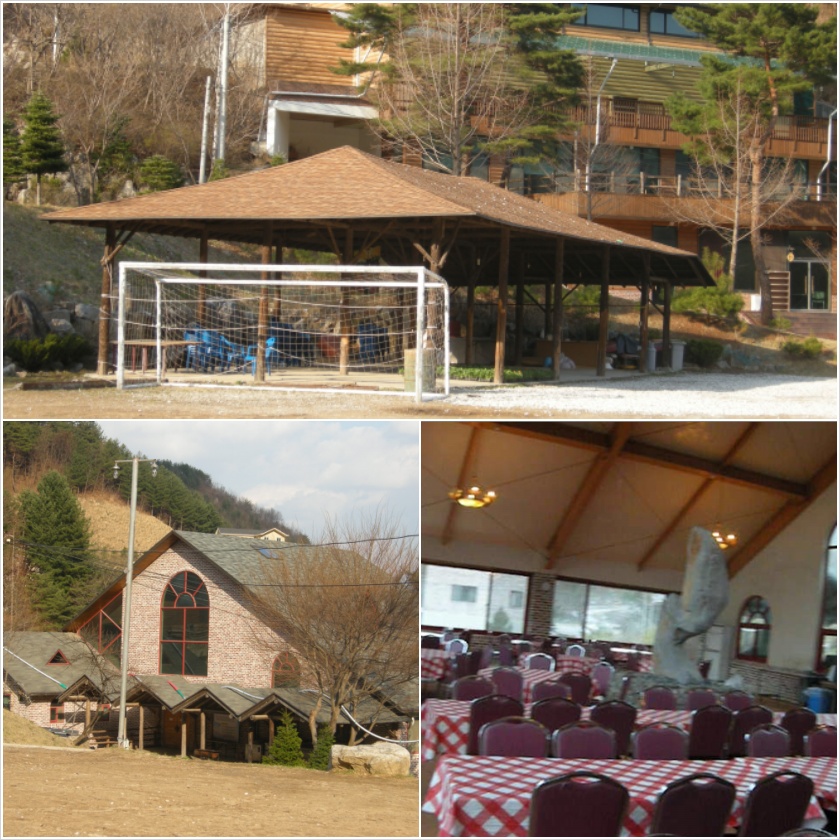 다운 수련회 예정 식당이구요 맨 위는 바베큐 같이 해 먹을 야외 장소입니다.