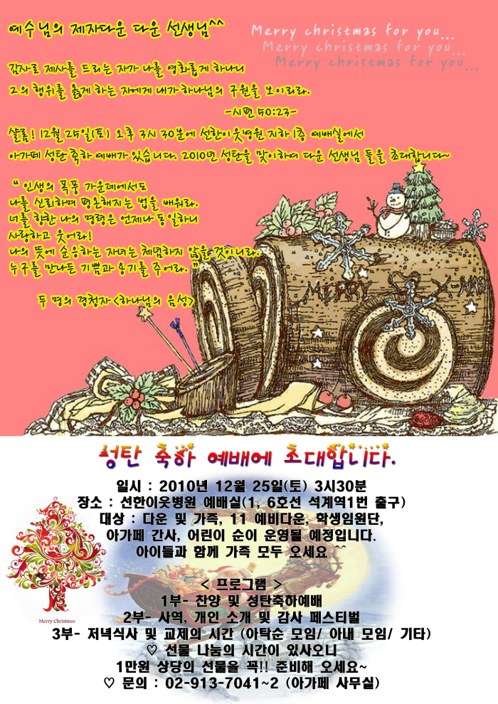 12월 25일(토) 아가페 성탄축하 예배가 있습니다!!!ㅎ