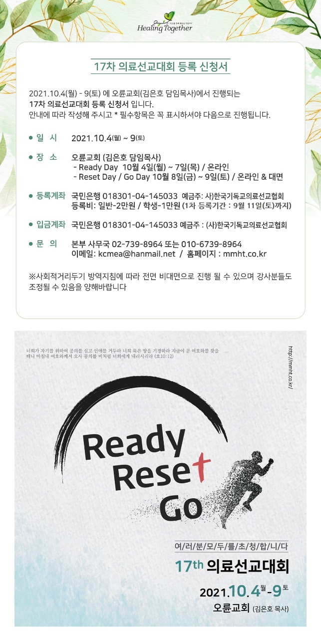 의료선교대회가 10월 4일~9일에 걸쳐 온라인으로 진행됩니다.