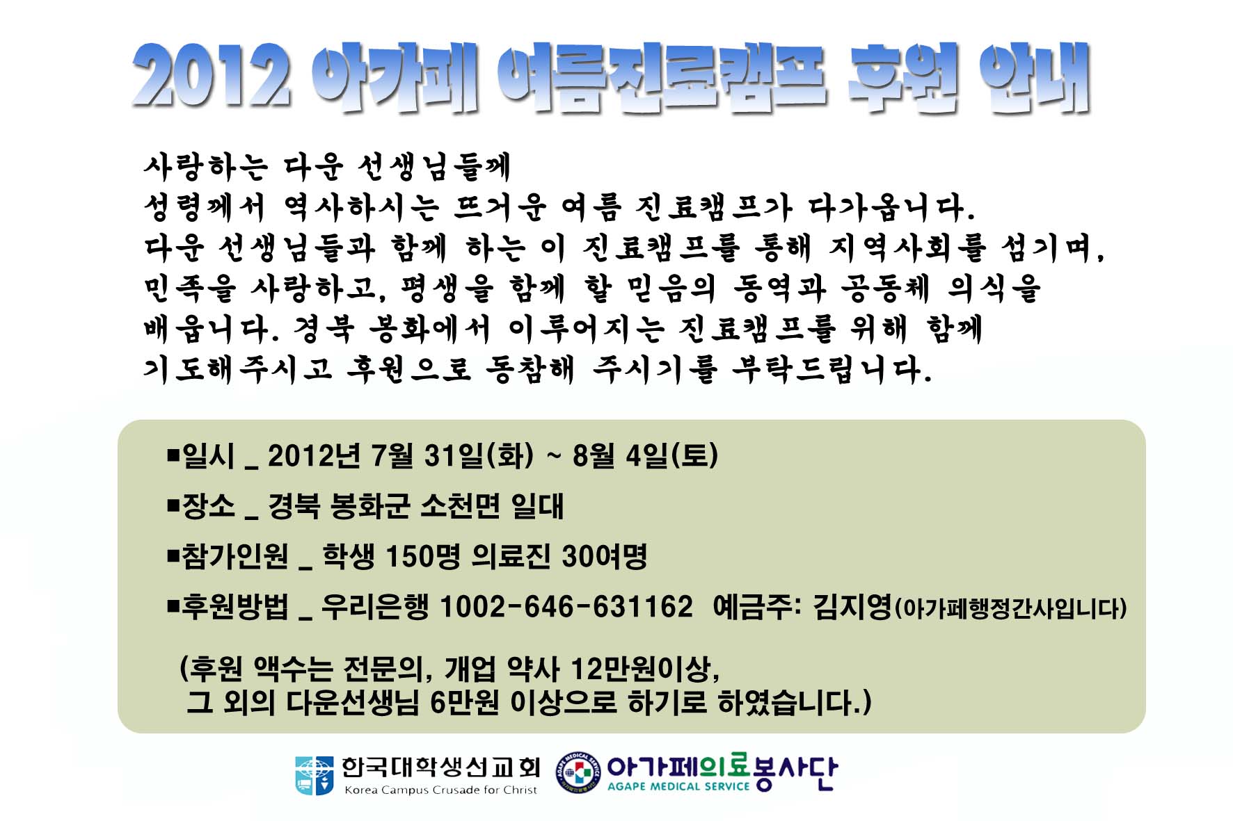 2012 여름진료 캠프(7/31~8/4) 후원안내
