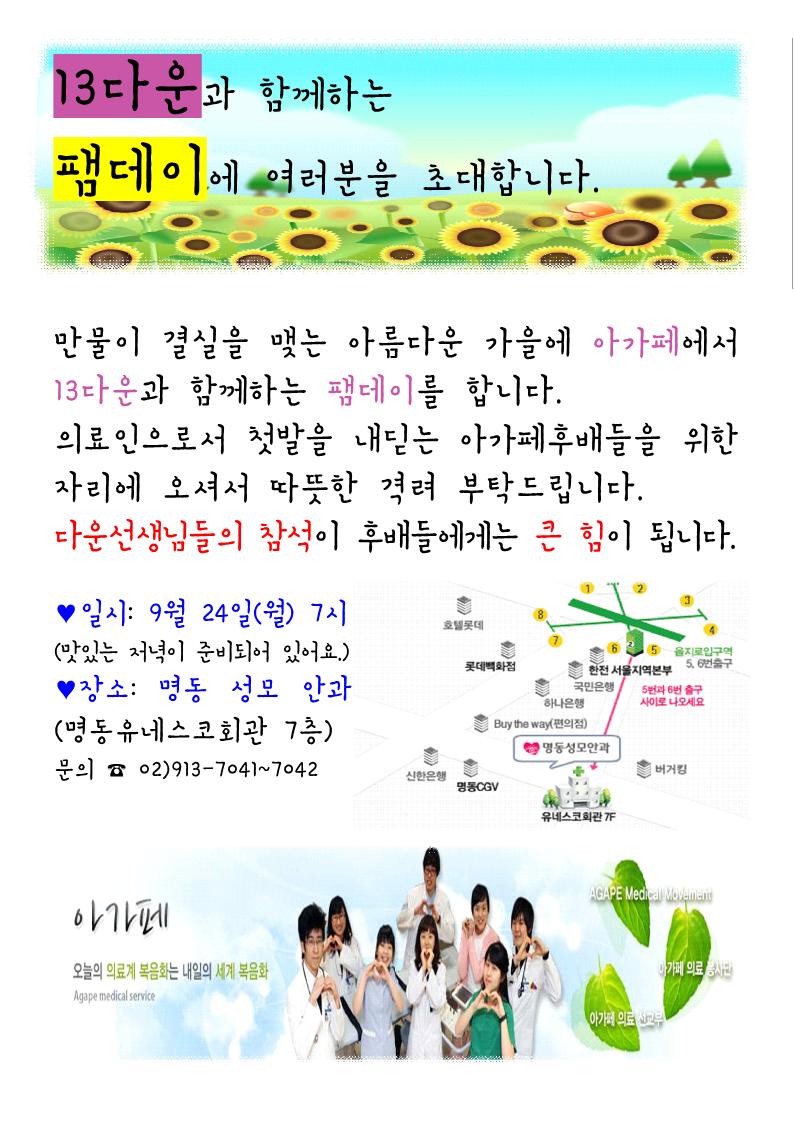 9월 24일 13다운과 함께하는 팸데이♡ > 아가페 뉴스
