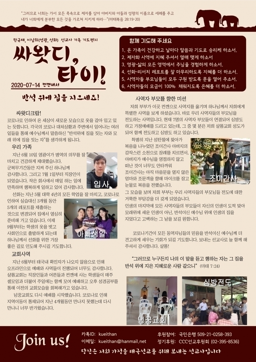 20' 아가페 여름사역- 선교사님들의 인사와 근황을 전합니다