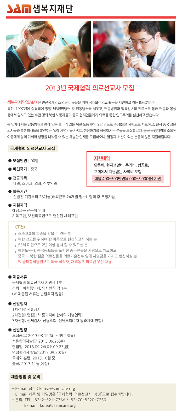 샘복지재단 의료선교사 모집 > 아가페 나눔터2020