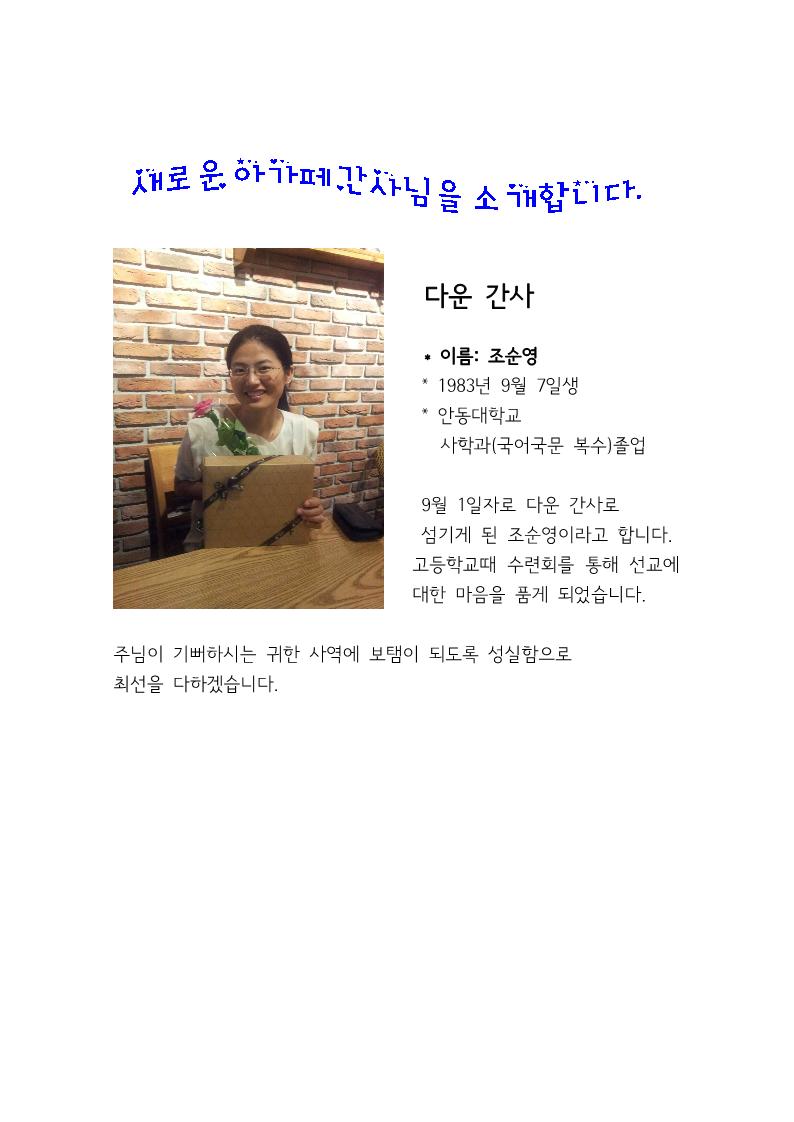 9/1일자, 새로운 아가페 간사님을 소개합니다.
