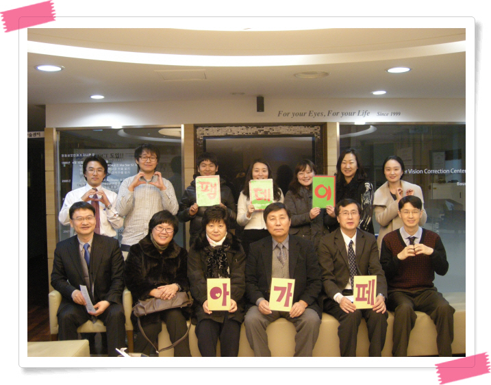 12월 26일 팸데이 다운소식& 광고![]() 1) 서울역 노숙인 무료 주말 진료가 매주 토요일마다 있습니다. < 의료진 섬김 현황 > 12/24 전용순, 서용배, 최윤구, 안은용, 김지호 * 함께 섬길 의료진을 계속 모집 중입니다. 매월 의사 10명, 간호사 5명, 약사 5명 필요. 주말진료 자원봉사 신청을 해주세요~(아가페 홈페이지 배너 클릭) 2) CCC 대학생 금식 수련회가 시작되었습니다. 금식하며 주님께 나아갈 학생들을 위해서 기도해주세요^^ 주제: 새힘의 근원을 알게 하소서(사 40:31) 날짜 : 12월 26일(월) ~ 29일(목) 장소 : 경기도 마석 수동기도원 3) 나사렛 원단 금식 수련회 주제: 새힘의 근원을 알게하소서(사40:31) 강사: 박성민 목사, 김학영(이경숙)태국선교사, 류시문 원장, 문규성 선교사등 일시&장소 : 12월 30일(금) 저녁 ~ 31(토) 저녁, CCC 부암동 센터 등록비: 3만5천원 (선등록시: 3만원, 12월 27일(화)까지 인터넷http://cccnb.kr, 전화(02-397-6370) 문의: 02-397-6370 4) 1월 주제가 있는 팸데이 주제: “ 비전인생” 강사: 박수웅 장로님(우리 사랑할까요 저자) 일시: 2012년 1월 30일(월) 7시/ 명동 성모안과 5) 2012년 다운 총회& 12다운 입단식 일시: 2012년 2월 19일(일) 5시 장소: 선한이웃병원 6) 아가페하우스(충남 당진 펜션)에 놀러오세요! (홈페이지=> http://cccagape.org/agapehouse/) 아가페 다운들이 저렴하게 편안히 쉬어갈수 있는 곳! 신청은 사무실로 해주세요~!! < 다운회비 후원안내^^ > 아가페 다운과 학생사역은 다운들의 회비로 운영이 됩니다. 다운으로서의 의무인 다운회비 후원을 부탁드리며 준비된 CMS신청서를 작성해 주시면 됩니다. - 11월 신규후원자: 전용순 * 현재(11월): 225명, 약 780만원 -> 목표: 300명, 800만원 |