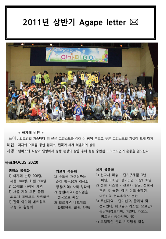 기존에 아가페의 소식을 주로 웹진을 통해서 보내드렸는데