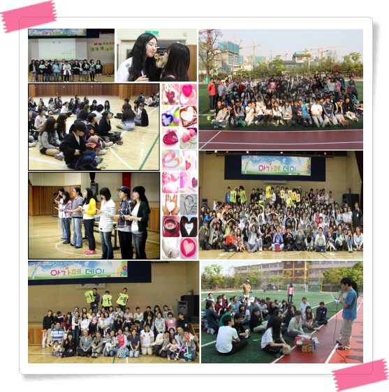 1) 지난 5월 5일 화창한 날씨에 아가페데이가 금호초등학교에서 있었습니다^^
