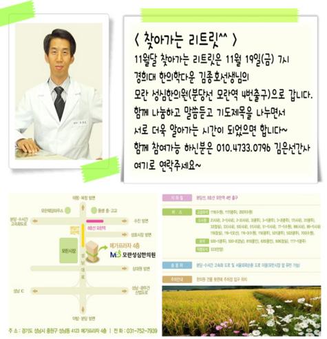 경희대 한의학다운 김종호선생님의 모란 성심한의원(분당선 모란역) 으로 갑니다.