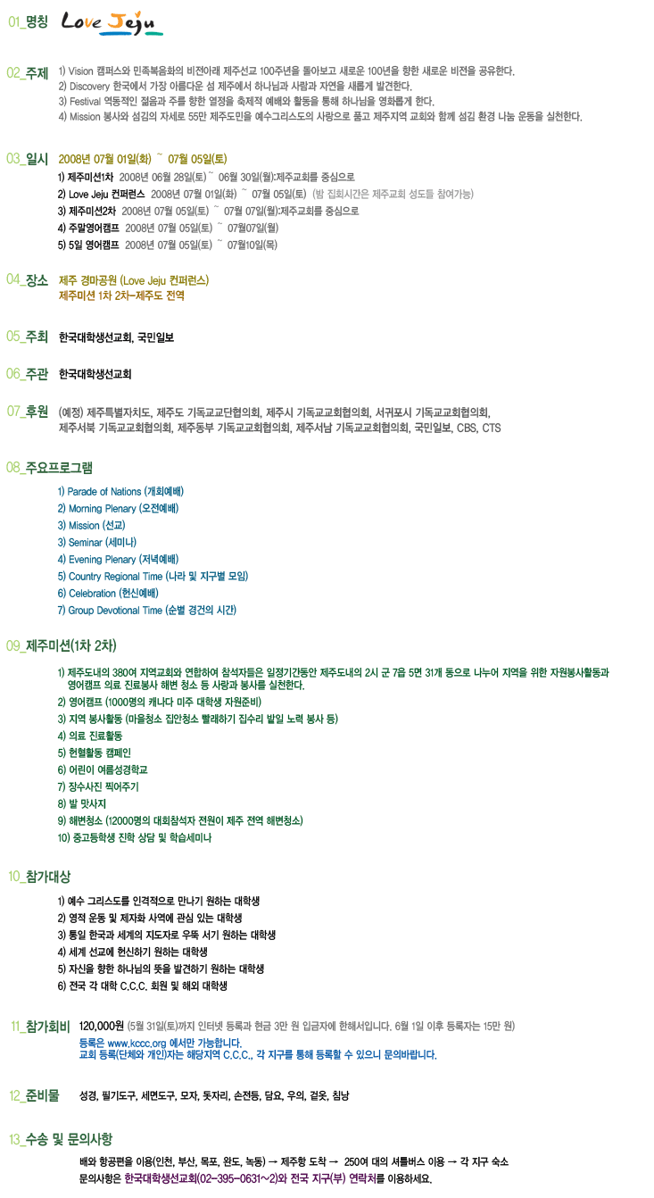 이번 전국 CCC 여름수련회 - 러브 제주- 에 선생님들의 섬김이 필요합니다. 제주에서 귀한 섬김과 함께 가족과도 시간을 시간을 가질 수 있습니다. 아래 안내를 보시고 지원해 주시기 바랍니다.