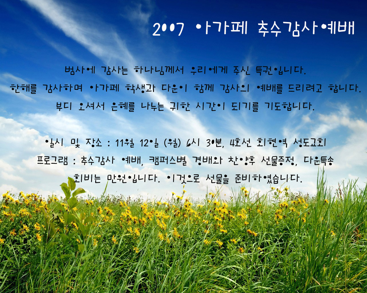 그날 다운특송은 개역개정판 찬송가 588장 "공중 나는 새를 보라"를 할 예정이오니 파트별로 준비해 오셔서 맞춰보겠습니다.