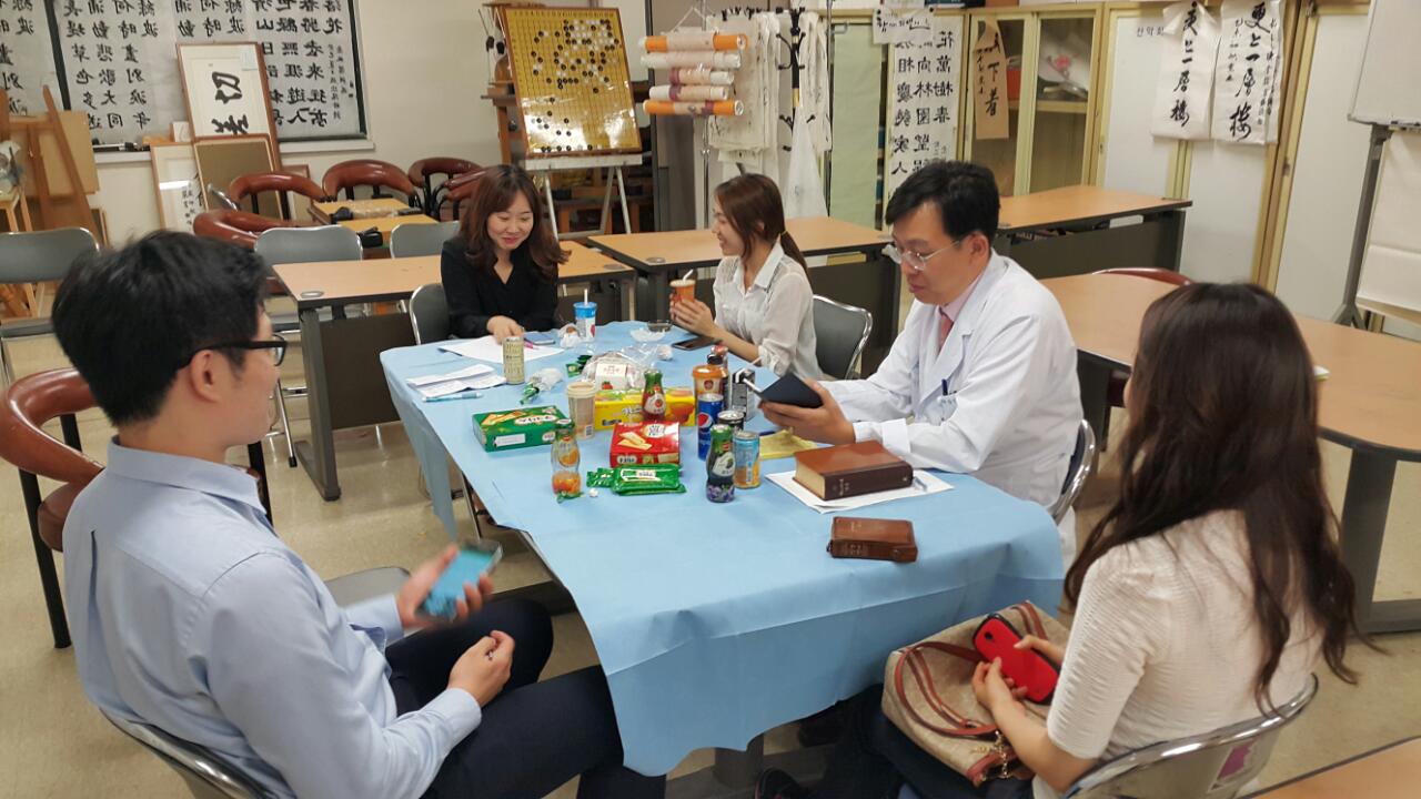 이번주 모임엔 장성수 순장님ᆞ김진영순장님ᆞ김심선 순장님(경희대 간호 07다운)  서화정순장님( 경희대 간호 09다운)  배문주 순장님 ( 중앙대 간호 13다운 ) 이성주 순장님  ( 카톨릭대 간호 15다운 )  저ᆢ 그리고 9살인 제딸 이케  8명 참석했습니다ᆢ제 딸도 가끔 참석합니다 ㅋㅋ