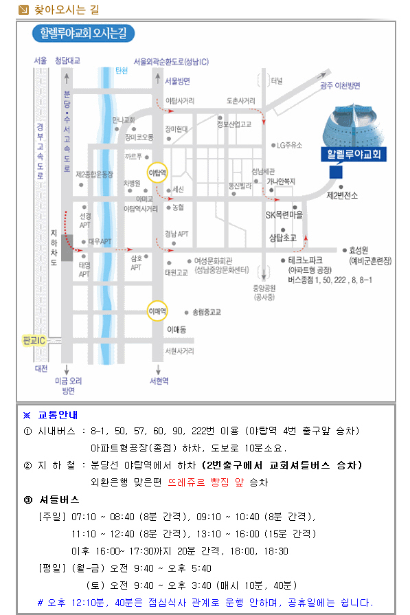 분당 할렐루야 교회 찾아오는 길입니다~~