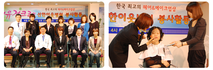 Çѱ¹ ÃÖ°íÀÇ Çì¾î&¸ÞÀÌÅ©¾÷¼¥ÀÎ ÀÌÀ¯Á¤Å©·¹(û´ãµ¿ ¼ÒÀç)¿¡¼ ¸Å¿ù µÑ° ÁÖ È¿äÀÏ¿¡ º´¿ø ºÀ»ç¸¦ ½Ç½ÃÇϰí ÀÖ½À´Ï´Ù. ÀÔ¿øÈ¯ÀÚ¿Í º¸È£ÀÚ¸¦ ´ë»óÀ¸·Î ¹«·áĿƮ¸¦ ½Ç½ÃÇϸç, ÀϹÝÀÎÀ» ´ë»óÀ¸·Î ¸ÞÀÌÅ©¾÷ °Á¸¦ ÇÏ¿´½À´Ï´Ù. ÃÖ°íÀÇ ½Ç·ÂÀ» °®Ãá ½ºÅǵéÀÌ Âü¿©ÇÏ¿© ¸¸Á·µµ°¡ »ó´çÈ÷ ³ôÀ¸¸ç, ƯÈ÷ 10¿ù ºÀ»çȰµ¿¿¡´Â ÀÌÀ¯Á¤´ëÇ¥°¡ ¹æ¹®ÇÏ¿© ȯÀÚ¿Í Á÷¿øµé¿¡°Ô °ÀÇ¿Í ¸ÞÀÌÅ©¾÷À» Á÷Á¢ ÇØÁÖ¸ç ¾Æ³¦¾øÀÌ ½Ç·Â¹ßÈÖ¸¦ ÇÏ¿´½À´Ï´Ù.