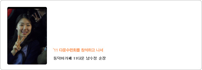 ÇÏÁö¸¸ ´Ù¿î¼ö·Ãȸ¿¡ Âü¼®ÇÏ°í ½Í¾ú±â¿¡, ³»°¡ Âü¼®ÇÒ ¼ö·Ãȸ¸¦ À§ÇØ ¼¶±æ ¼ö ÀÖ´Â ±âȸ¸¦ ³õÄ¡°í ½ÍÁö ¾Ê¾Ò½À´Ï´Ù. ±×¸®°í ÁغñÆÀÀ¸·Î ¿©·¯ ¹ø ¸ðÀÓÀ» °®°í ÇÔ²² ±âµµÇÏ¸é¼ ¼ö·Ãȸ¿¡ ´ëÇÑ ±â´ë¿Í ¾ÕÀ¸·ÎÀÇ ´Ù¿î¼øÀåÀ¸·Î¼ÀÇ »î¿¡ ´ëÇÑ ±â´ë°¡ Á¶±Ý¾¿ Ä¿Á³½À´Ï´Ù.